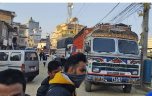 सडक पिच गर्न माग गर्दै थली-साँखु खण्ड बन्द