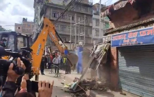 वीर अस्पताल क्षेत्रका अनधिकृत संरचनामाथि महानगरले चलायो डोजर
