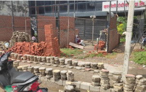 फुटपाथ निर्माण गुणस्तरहीन भएपछि दोहोर्याएर बनाइँदै