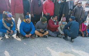 सडक विस्तारमा ढिलाइ भएको भन्दै चक्काजाम