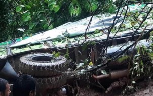 गुल्मीमा पहिरोले ६ परिवार विस्थापित, ट्रकसमेत पुरियो
