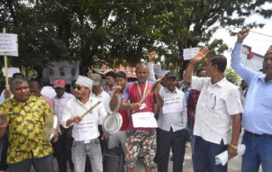 माइतीघरमा नारा- अर्बौंको काठ कुहिँदैछ, सरकार विदेशबाट काठ भित्र्याउँदै छ (तस्बिर...