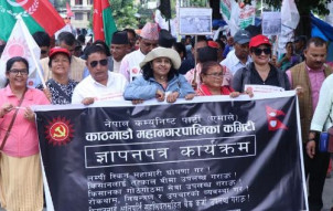 लम्पी स्किनबाट प्रभावित किसानलाई क्षतिपूर्ति दिन माग गर्दै एमालेको प्रदर्शन (तस्...