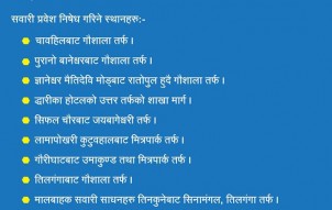 राजधानीका यी सडकमा शुक्रबार सवारीसाधन प्रवेश निषेध