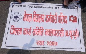 बजेटलाई लिएर सामुदायीक शिक्षक, कर्मचारी असन्तुष्ट : काठमाडौं थाल ठटाएर गरे प्रर्...