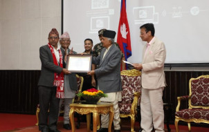 राष्ट्रपति पौडेलद्धारा युगकवि सिद्धिचरण पुरस्कार डा. जयराज आचार्यलाई प्रदान
