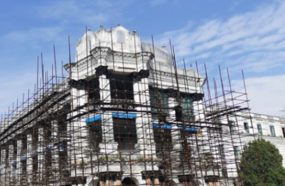 भूकम्पबाट क्षति भएको सिंहदरबारको पश्चिम मोहडाको प्रबलीकरण सुरु