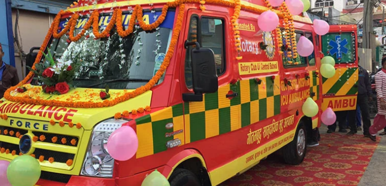 रोटरी क्लव अफ सेन्ट्रल र मुटु अस्पतालले सांस्कृतिक कार्यक्रम गरी संकलन गरेको करिब ५० लाख रुपैयाँमा एम्बुलेन्स खरिद गरिएको हो । अस्पतालका अनुसार यस्तो सुविधासहितको एम्बुलेन्स सेवा प्रदेश ५ मै पहिलो हो । उक्त एम्बुलेन्सको प्रदेश ५ का सामाजिक विकास मन्त्री सुदर्शन बरालले सोमबार शुभारम्भ गरे ।