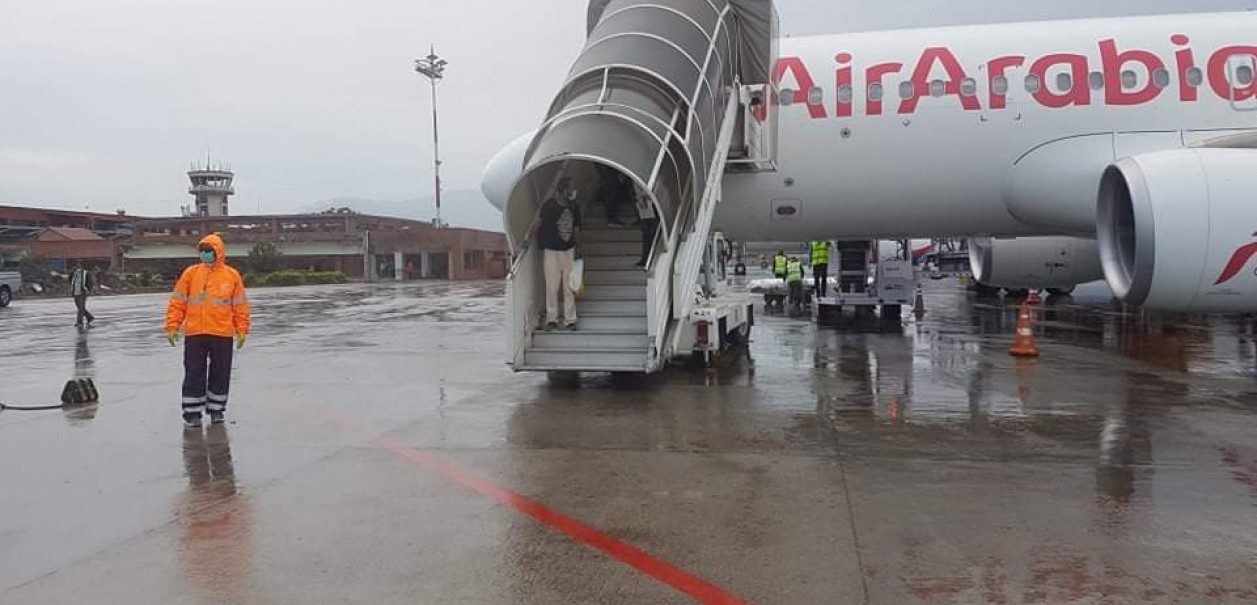 नेपाली ल्याएर आएको एयर अरेबियाको जहाज शुक्रबार अपरान्ह त्रिभुवन अन्तर्राष्ट्रिय विमानस्थलमा अवतरण गरेको छ। विमानस्थल कार्यालयका अनुसार १६८ जना वयस्क तथा एकजना बच्चा उक्त जहाजमा आएका छन्। सोही विमानमा एउटा शव पनि ल्याइएको छ।