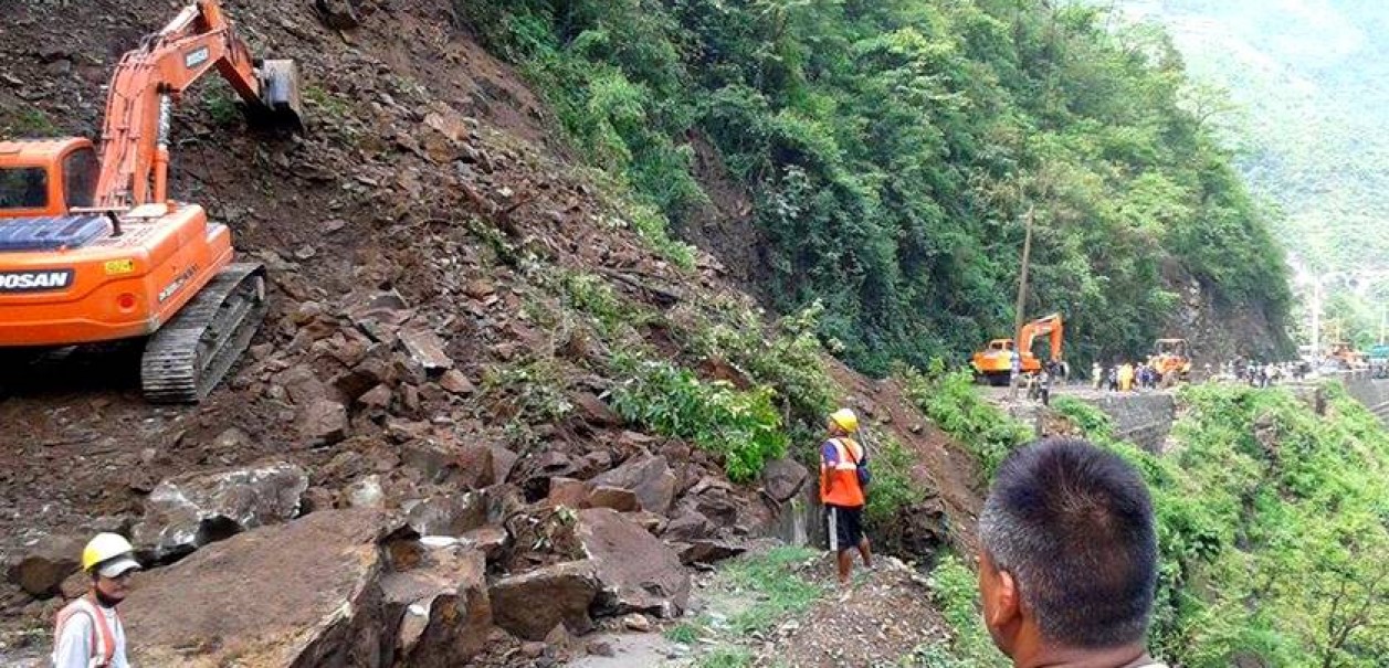 चारकिलो नजिकै ठूलो पहिरो खस्याे, नारायणगढ-मुग्लिन सडक पूर्णरुपमा बन्द