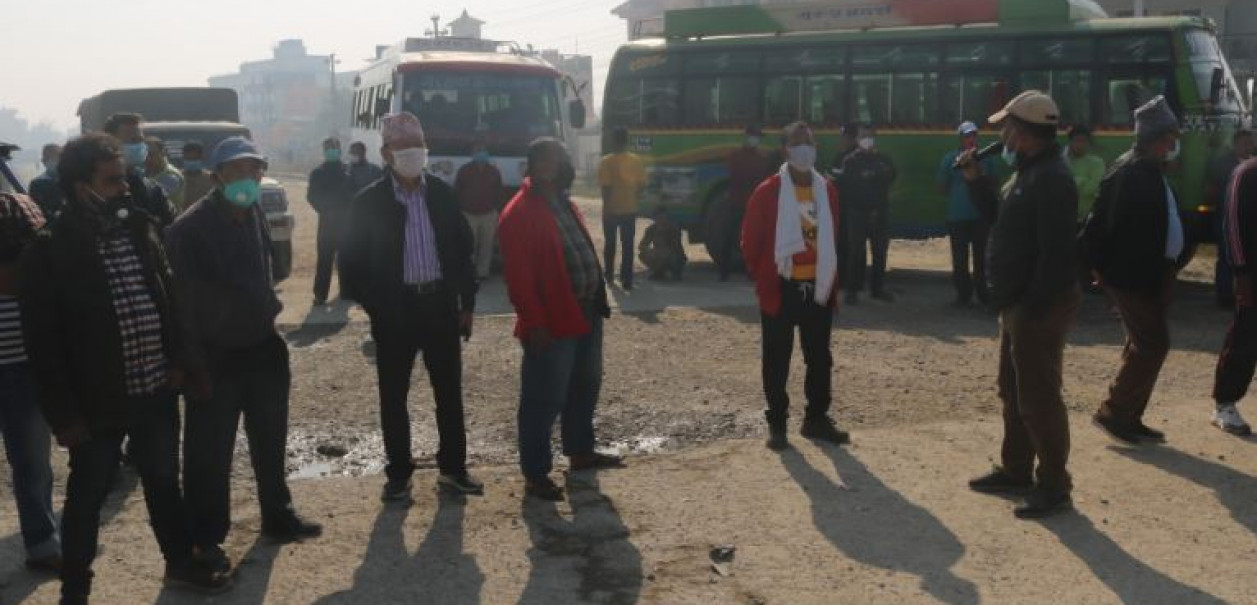 सडक निर्माणमा ढिलासुस्ती गरेको विरोधमा चक्काजाम
