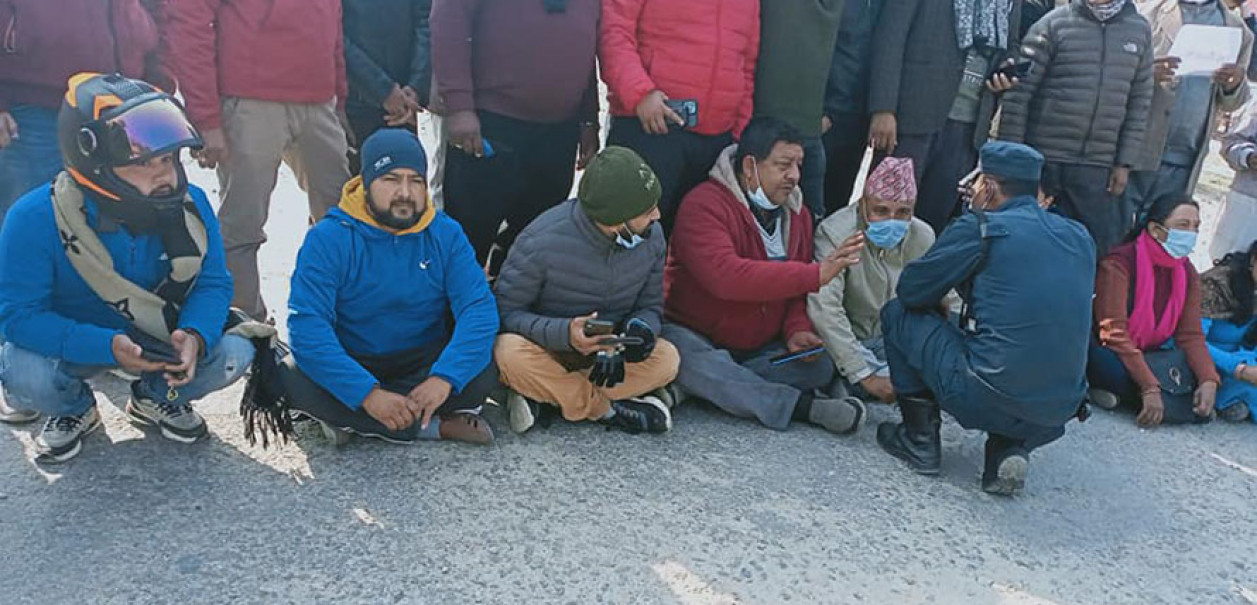 सडक विस्तारमा ढिलाइ भएको भन्दै चक्काजाम