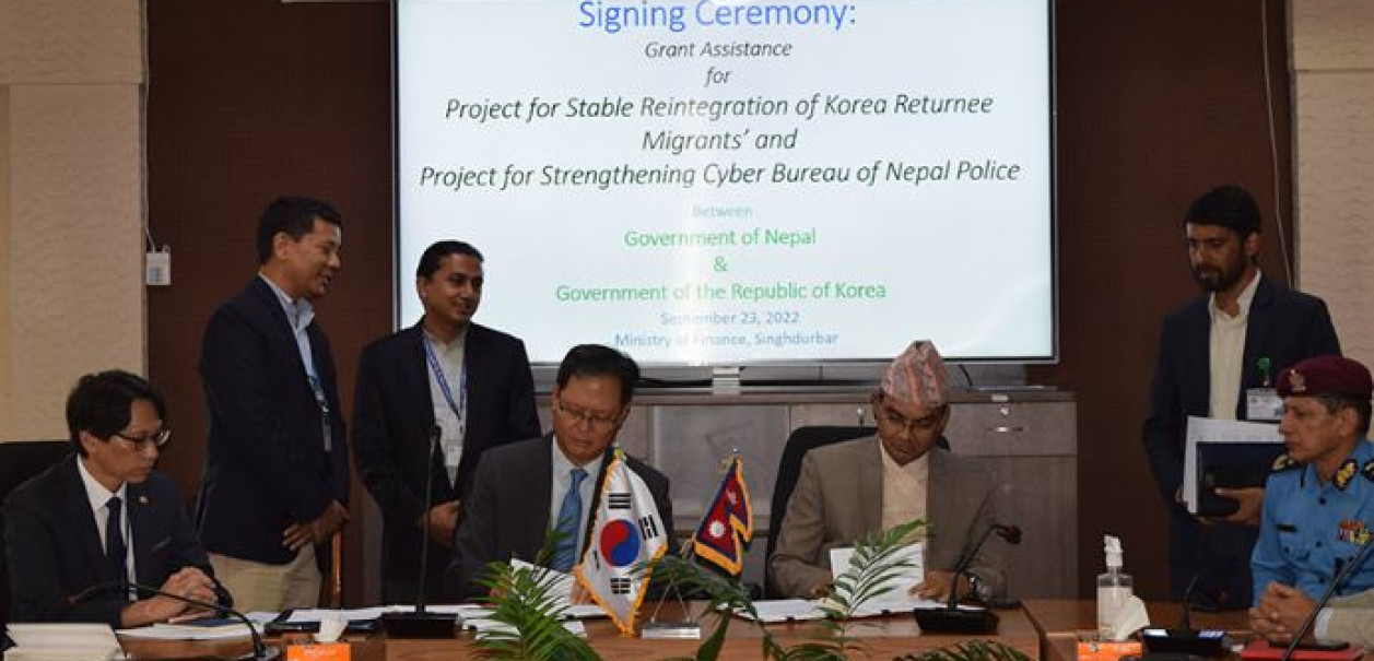 दक्षिण कोरियाले आप्रवासी कामदारहरूको पुनःएकीकरणका लागि साइबर ब्यूरो स्थापना गर्न अनुदान उपलब्ध गराउने भएको छ । कोरियाबाट नेपाल फर्कने आप्रवासी कामदारहरूको स्थिर पुनःएकीकरणका लागि चरणबद्ध सहयोग प्रणाली सुदृढ गर्ने र नेपाल प्रहरीको क्षमता अभिवृद्धि सहितको साइबर ब्यूरोको स्थापना गर्न उक्त अनुदान प्रयोग हुने अर्थमन्त्रालयले जनाएको छ ।