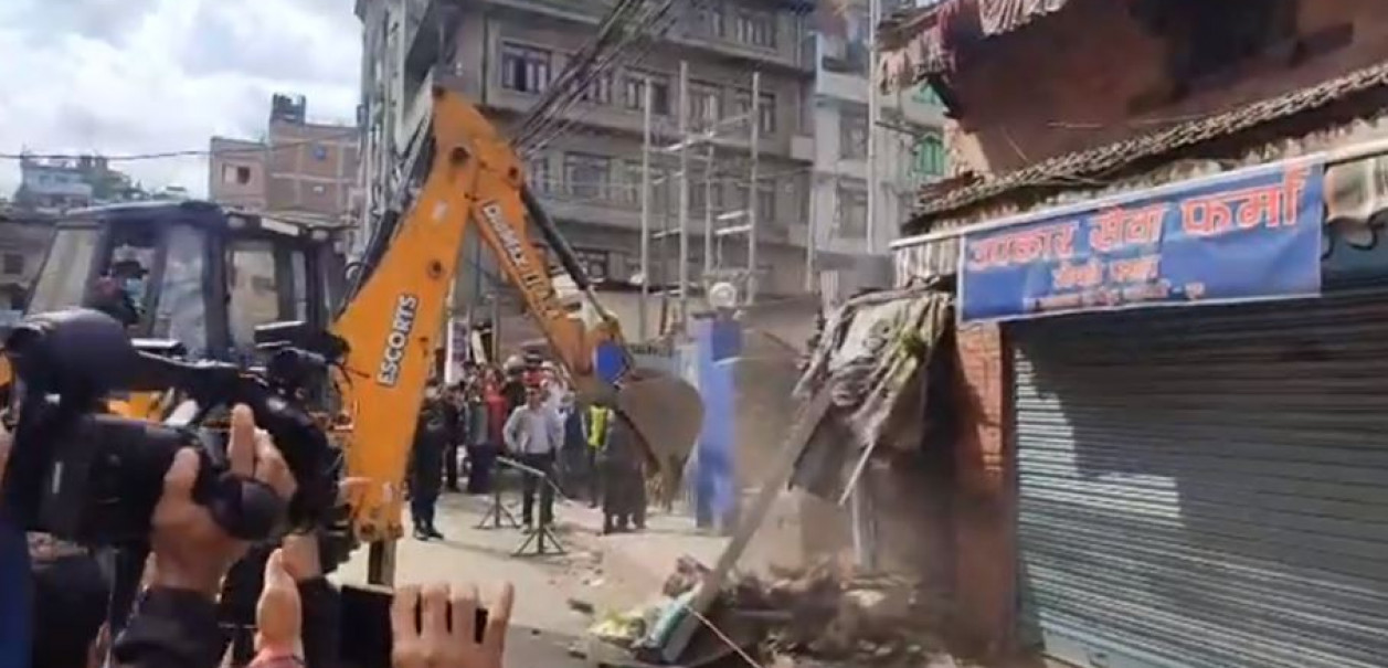 वीर अस्पताल क्षेत्रका अनधिकृत संरचनामाथि महानगरले चलायो डोजर