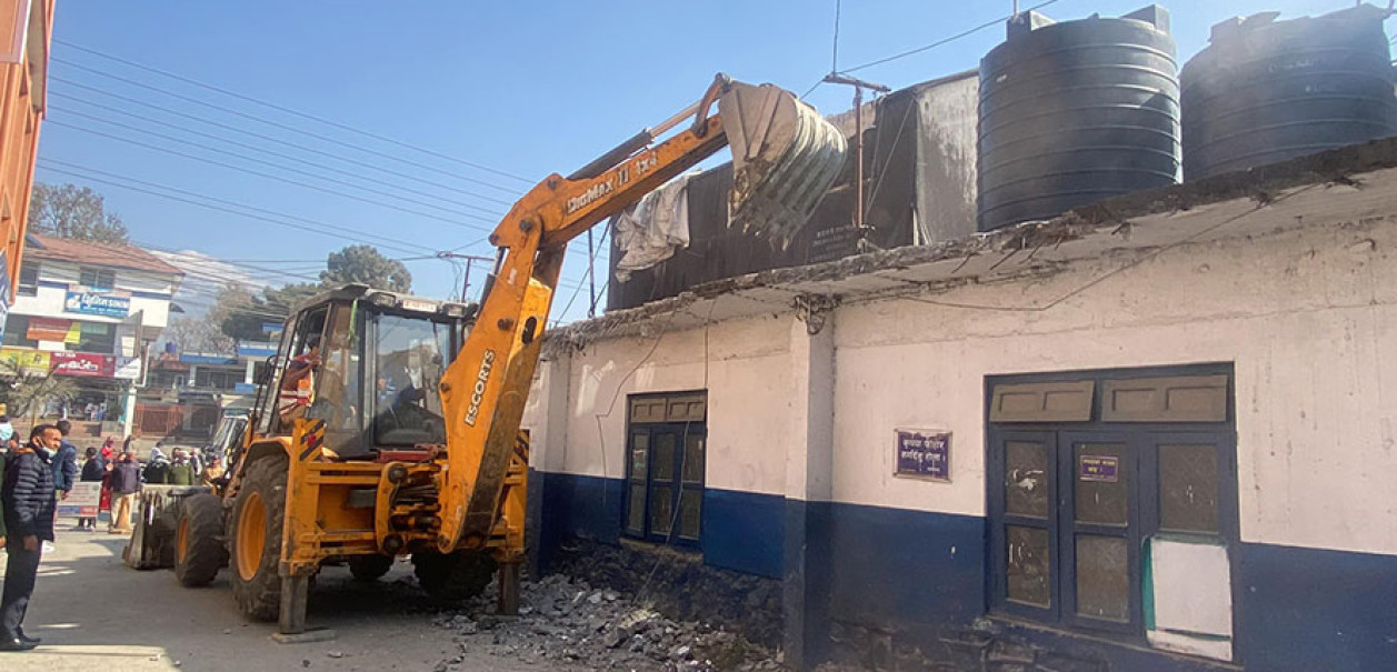 पोखरा महानगरले चलायो ‘पोखरा घर’ बनाउन पुरानो ट्राफिक भवनमा डोजर