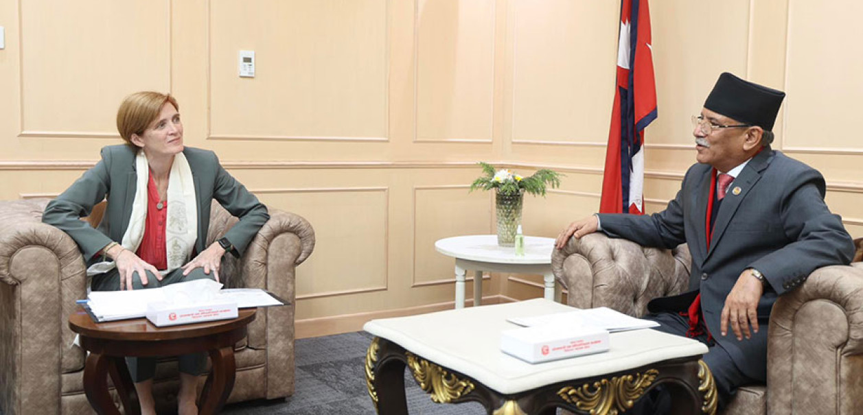 बुधवार प्रधानमन्त्री कार्यालयमा भयो प्रधानमन्त्री प्रचण्ड र युएसएआईडी प्रमुख सामन्था पावरबीच भेट