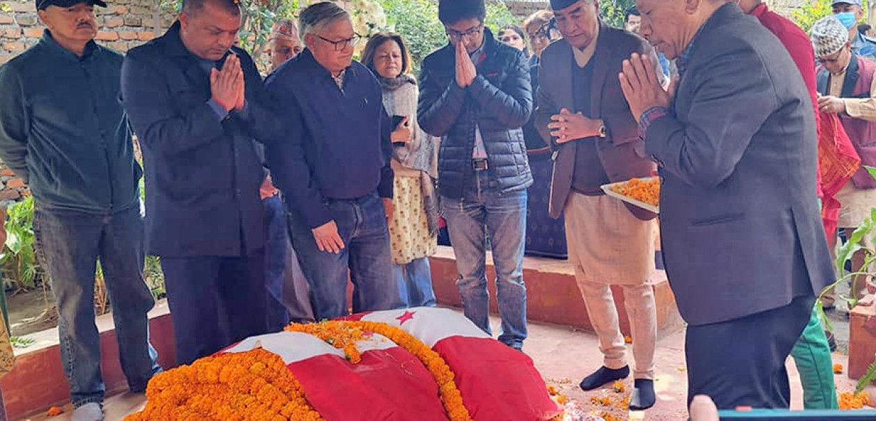 जबराको पार्थिव शरीरमा नेपाली कांग्रेसका नेताहरुले दिवंगत पूर्वगभर्नर जबराप्रति पार्टीको झण्डा ओढाएर श्रद्धाञ्जली अर्पण गरेका छन् ।