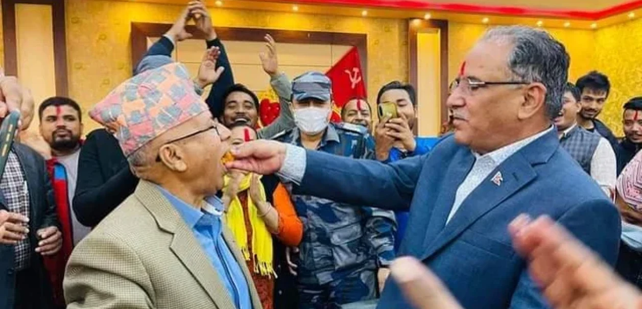 प्रधानमन्त्री पुष्पकमल दाहाल प्रचण्ड र नेकपा एकीकृत समाजवादीका अध्यक्ष माधवकुमार नेपालबीच भेटवार्ता चलिरहेको छ ।