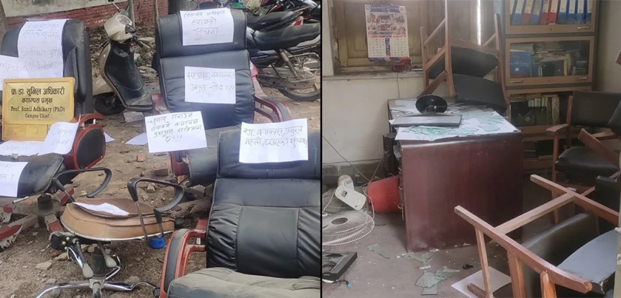 नेविसंघसहितका विद्यार्थी संगठनहरुले गरे त्रिचन्द्र क्याम्पसमा तोडफोड