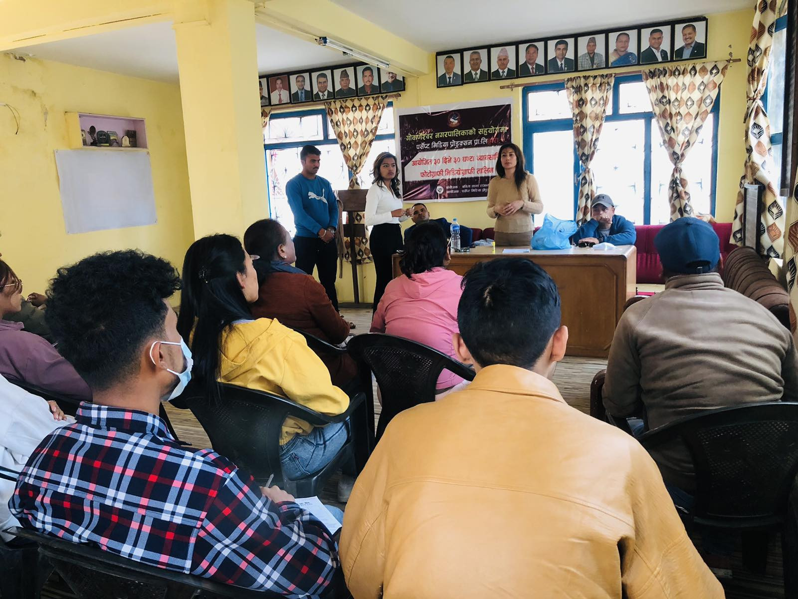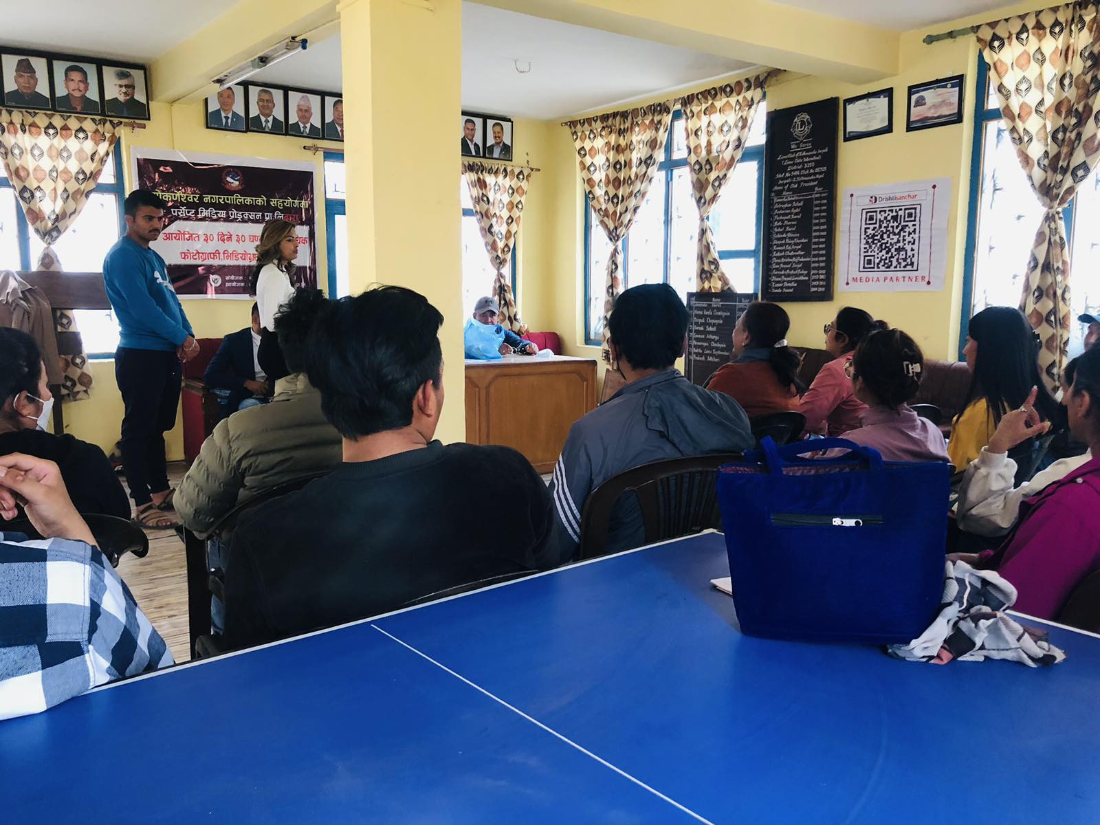 गोकर्णेश्वर नगरपालिकाको सहयोगमा पर्सेप्ट मिडियाद्वारा सञ्चालित ३० दिने ३० घन्टे फोटोग्राफी तालिम आज २१ गते आइतबारबाट लाइन्स भवन जोरपाटीमा सुरु भएको छ ।