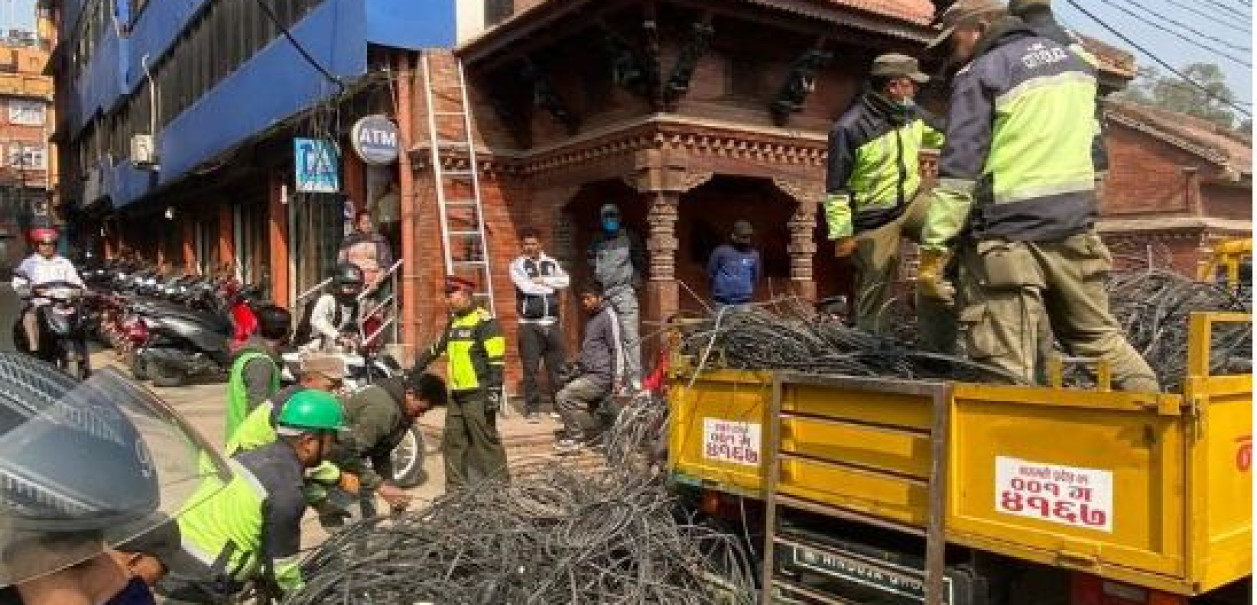 ललितपुर महानगरपालिकाले अव्यवस्थित रुपमा सडकका पोलमा रहेका इन्टरनेटका तार काट्न सुरु गरेको छ । शुक्रबार पुल्चोकको अक्षेश्वर महाविहार क्षेत्रबाट तार हटाउन थिालिएको ललितपुर महानगरका प्रहरी प्रमुख सिताराम हाथेछुले जानकारी दिए । सम्पदा क्षेत्रभित्रका बिजुलीको पोलमा राखिएका प्रयोग नभएको सबै तार काट्न लगाउने अभियान थालिएको हो ।
