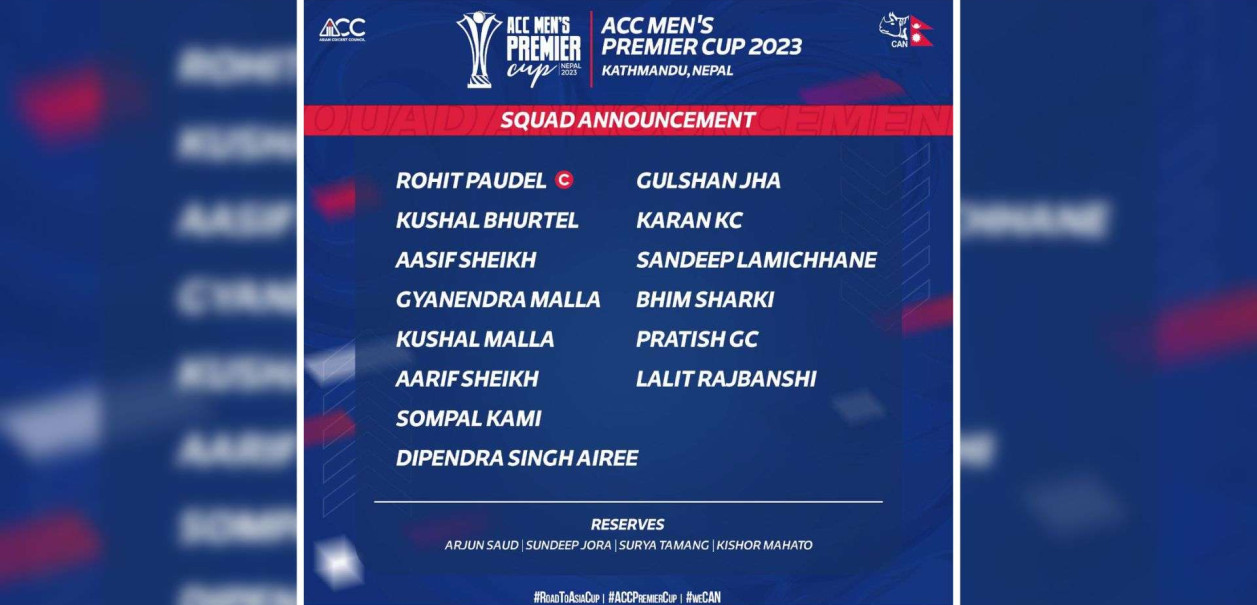 आगामी बैशाख ५ गतेदेखि काठमाडौंमा सुरु हुने एसीसी प्रिमियर कपका लागि रोहित पौडेलको नेतृत्वमा १४ सदस्यीय अन्तिम टोलीको घोषणा गरिएको हो ।