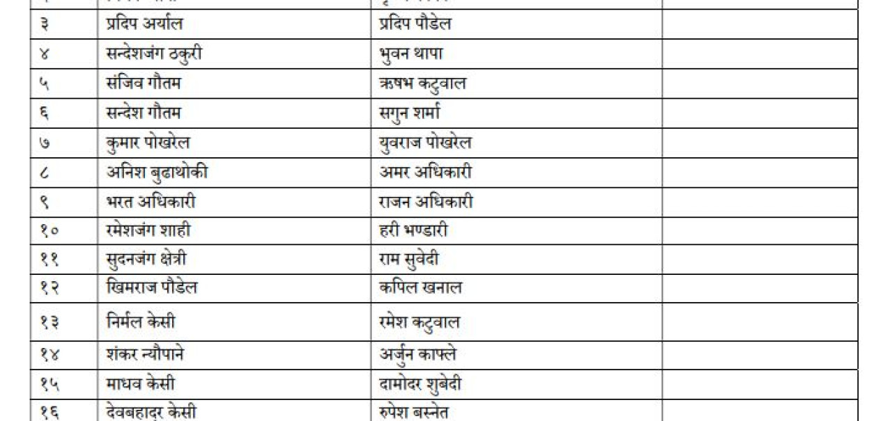 १६ देव बहादुर केसी रुपेश बस्नेत