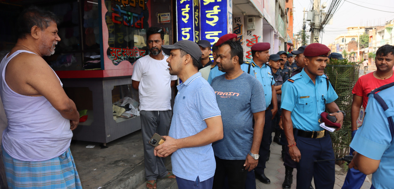 जनकपुरधामउप–महानगरपालिकाले शुरु गरेको सडक सुरक्षाअभियानमादाहालसंगै तीनै सुरक्षानिकायका सुरक्षाकर्मी,जनकपुरधामउप–महानगरपालिकाकाकर्मचारीहरु समेतसहभागीभएकाथिए ।