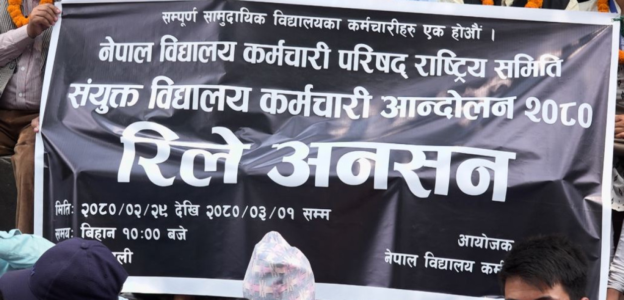सामुदायिक विद्यालयका कर्मचारीहरुको सेवा सुविधा नबढेको विरोधमा रिले अनशन सुरु
