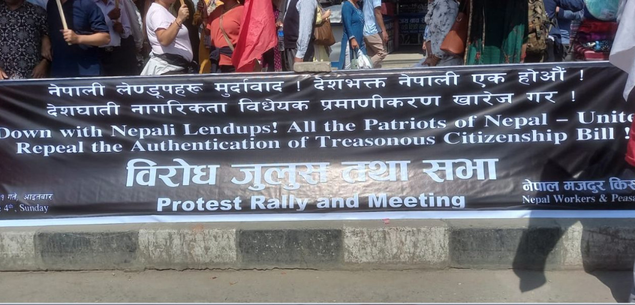 काठमाडौं । नेपाल मजदुर किसान पार्टीले राष्ट्रपतिबाट नागरिकता विधेयक प्रमाणीकरणविरुद्ध जुलुस तथा धर्ना कार्यक्रम गरेको छ ।