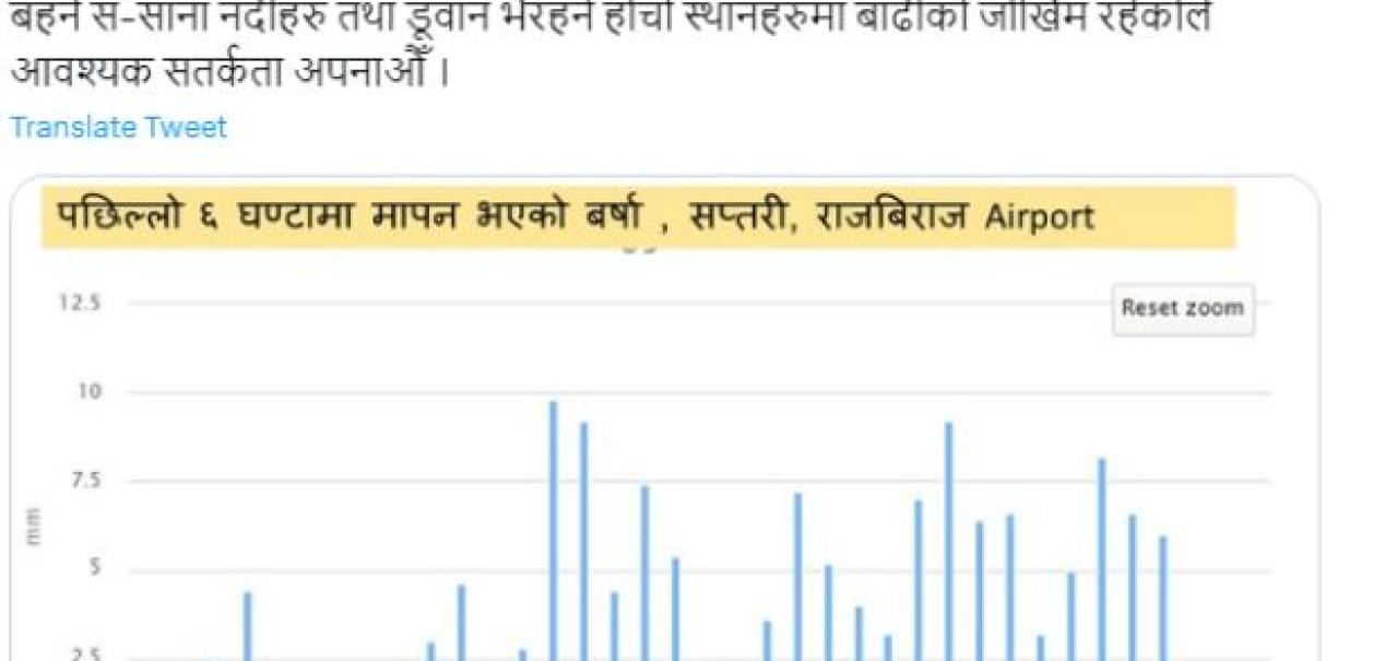 मधेश प्रदेशमा भारी वर्षाको सम्भावना : बाढी र डुबानबाट बच्न ‘अलर्ट’ जारी