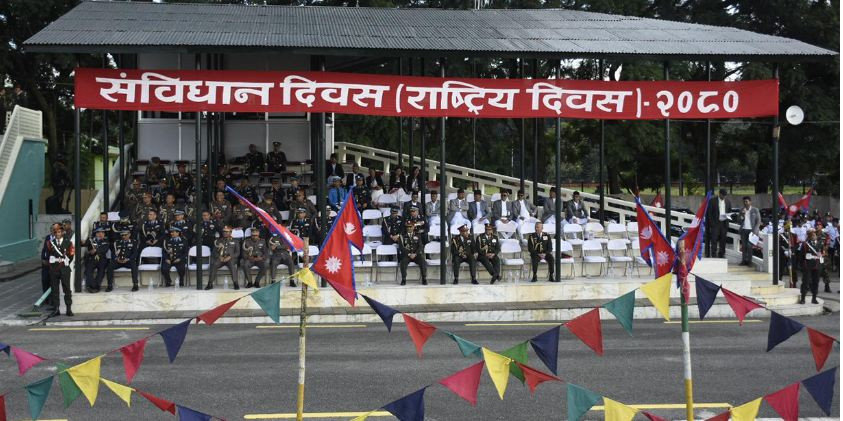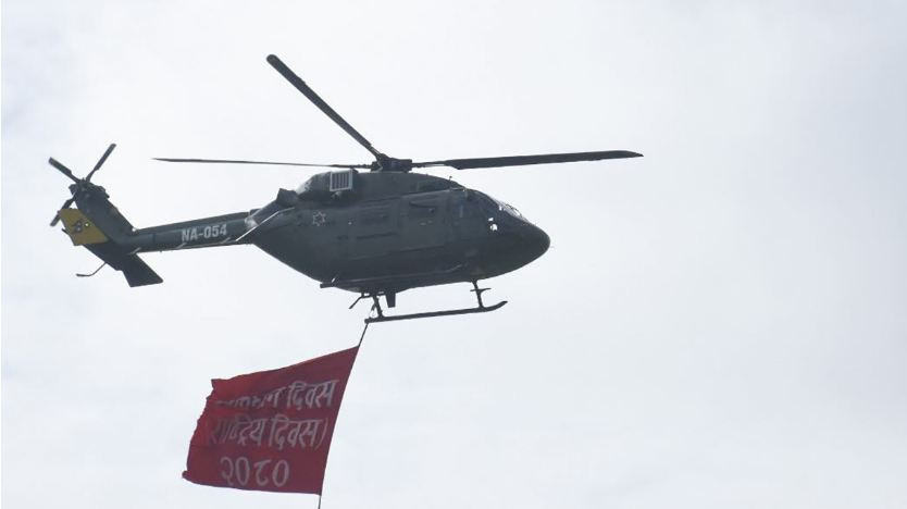 सो अवसरमा नेपाली सेनाको हेलिकोप्टरबाट ‘संविधान दिवस, २०८०’ लेखिएको ब्यानर प्रदर्शन तथा पृष्पवृष्टि गरिएको थियो।