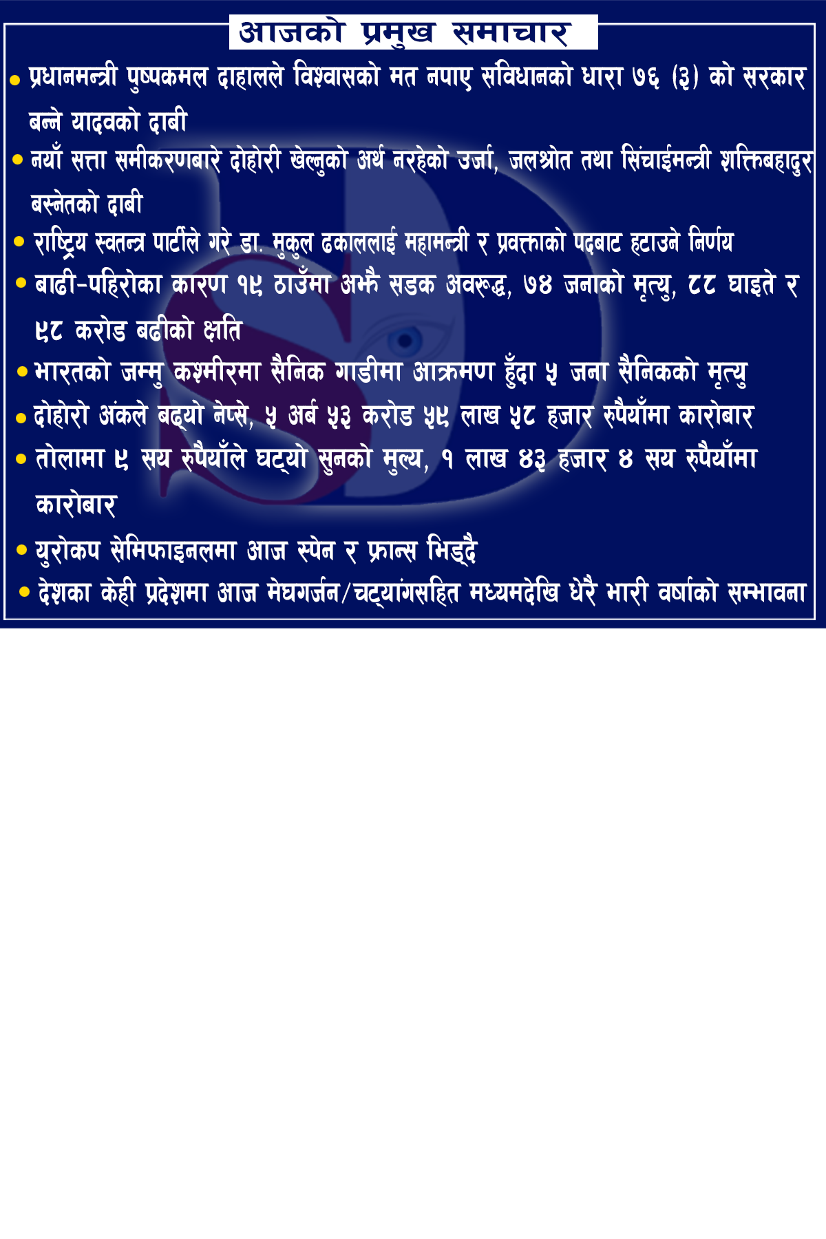 आजको प्रमुख समाचारहरु (2081/03/25)