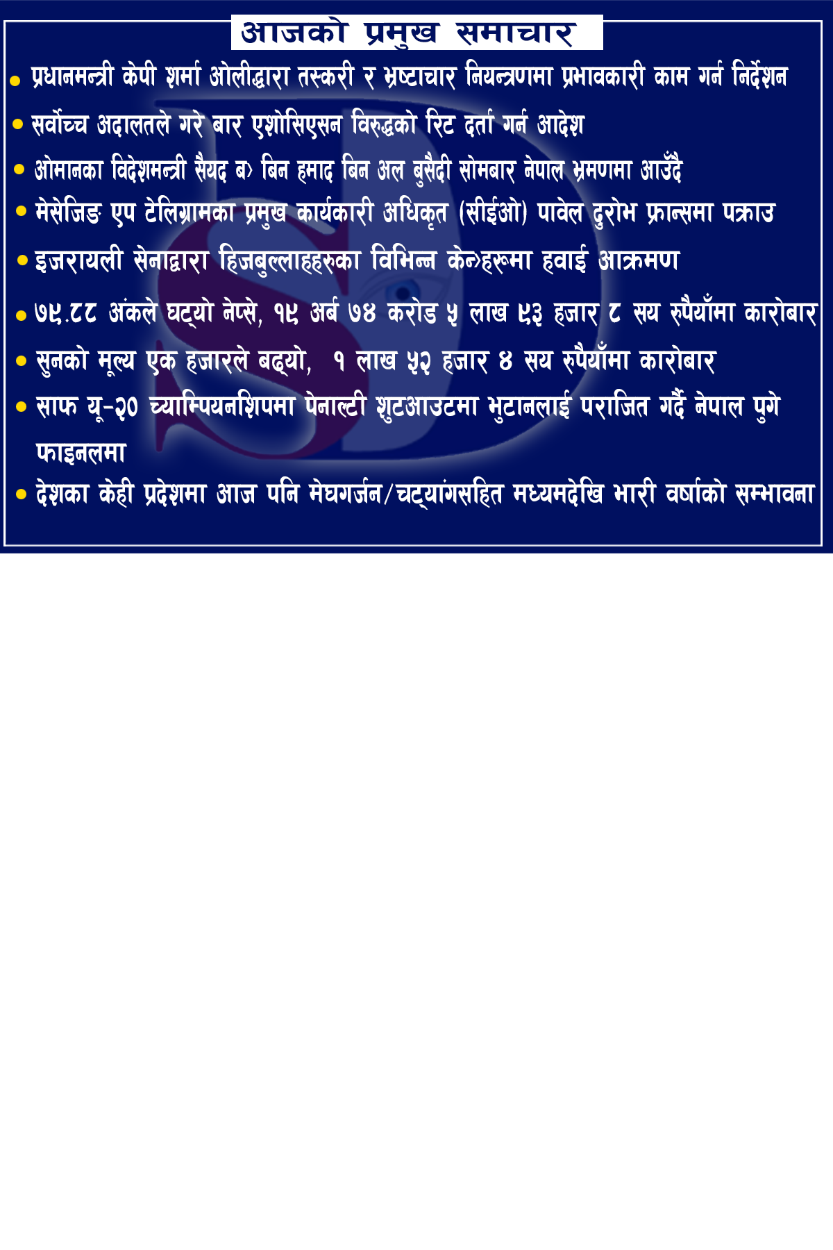 आजको प्रमुख समाचारहरु (2081/05/09)