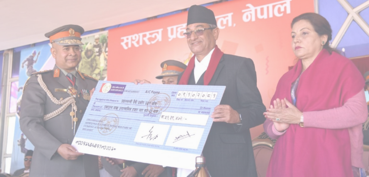 सशस्त्र प्रहरी बलको २४औँ वार्षिकोत्सवका अवसरमा सशस्त्र प्रहरी महानिरीक्षक राजु अर्यालले उक्त रकम बराबरको चेक गृहमन्त्री रमेश लेखकलाई हस्तान्तरण गरे ।