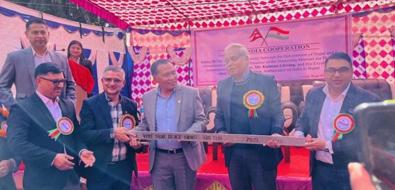 हेटौँडा । भौतिक पूर्वाधार तथा यातायात मन्त्री कुलमान घिसिङले नेपालका पूर्वाधार विकास, कनेक्टिभिटी र विपद् प्रतिरोध क्षमतामा भारत दीर्घकालदेखि विश्वसनीय साझेदार बनेको बताएका छन्। हेटौँडामा बिहीबार आयोजित भारतले प्रदान गरेको आपत्कालीन प्रयोगका लागि ‘बेली ब्रिज’ हस्तान्तरण कार्यक्रमलाई सम्बोधन गर्दै उनले भारतको सहयोग नेपालका महत्त्वपूर्ण पूर्वाधार विस्तारमा निर्णायक रहेको बताए।